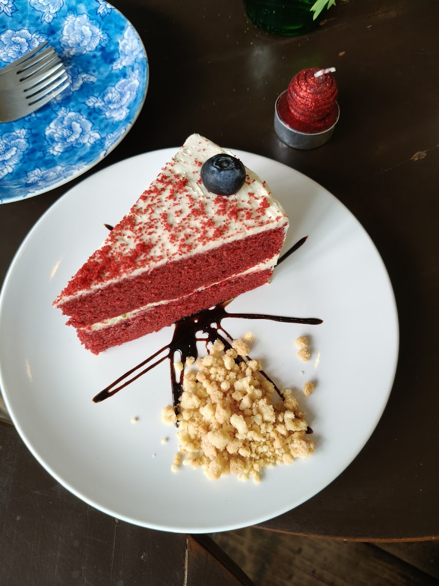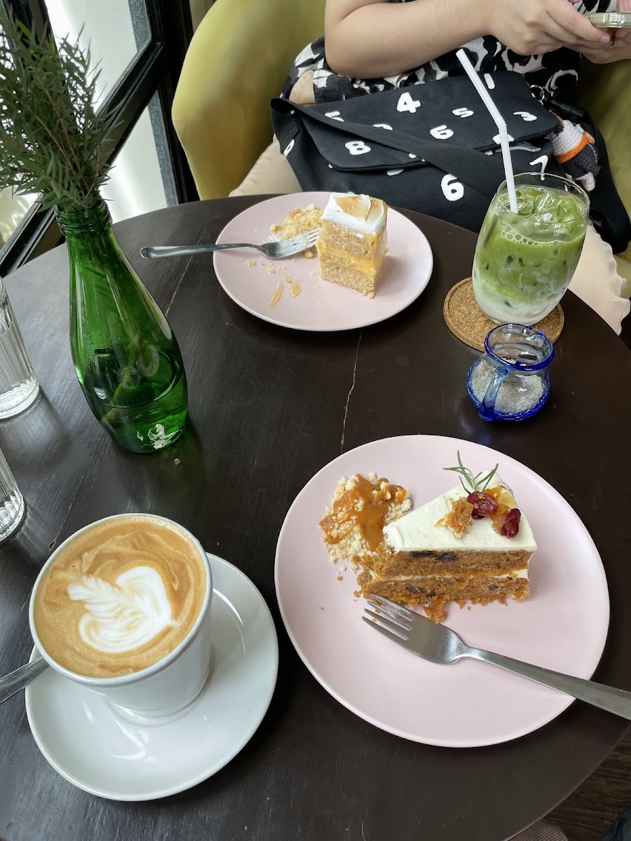 The carrot cake was good, the coffee and rose syrup was ok, the mixed fruits smoothly was good very refreshing and not too sweet. The red velvet cake was good they also have a small gallery on the 2nd floors. Nice cafe to sit down have some lunch and bakery items. They make their own rose syrup and have some items for sale inside the cafe.